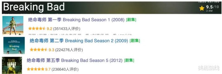 于2008年首播后,一共制作了5季,豆瓣9.2-9.7分,IMDb拿到惊人的9.5分...
